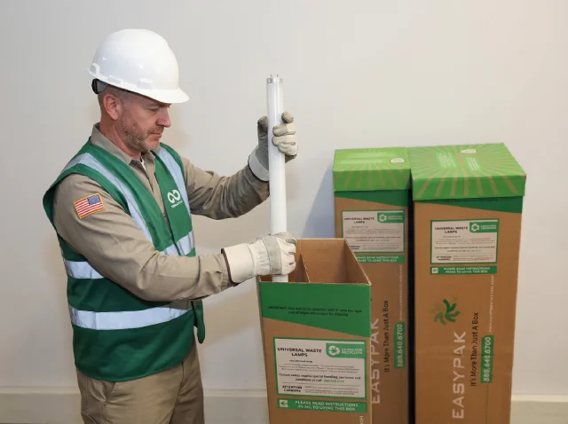 We handle universal and regulated waste, like batteries, e-waste, and lightbulbs, for industrial customers.